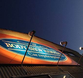 入口の上の一番目立つ所や店舗の壁面に